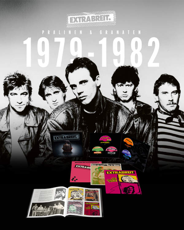 Frohes Neues allen Fans, Freunden und Feinden! Auch 2026 wird ein breites Jahr! Den Auftakt macht PRALINEN & GRANATEN – die ultimative Fanbox mit allem aus den frühen Jahren der Band! Die neu gemasterten, ersten drei Alben auf farbigem Vinyl inkl. CDs plus zwei CDs mit unveröffentlichtem Live- und Demo-Material sowie ein fettes Fotobuch mit Interview! Schaut euch das edle Teil mal an!