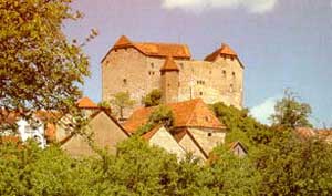 Als der Morgen graut, herrscht Stille in dem riesigen Haus. Die Kellerbesatzung ist zeitig erwacht, man verzichtet aufs Frühstück und sucht das Weite, ohne den Gastgebern Lebewohl zu sagen.. Glücklicherweise hat Laumann direkt nach dem Doppelkonzert kassiert, auch Verstärker und Anlage sind noch in der Nacht im LKW verstaut worden und so finden sich unsere Helden zu ungewohnt früher Stunde auf der A 45 in Richtung Heimat wieder, wo die letzten Vorbereitungen für die Aufnahme-Session zum zweiten EXTRABREIT-Album anstehen. Als die BREITEN dann an einem sonnigen Maitag des Jahres 1981 im Studio in Hiltpoltstein eintreffen, haben sie Material im Gepäck, das zum Teil bereits live erprobt ist, aber in der selten kreativen Atmosphäre dieser Session noch mit den Zutaten versehen wird, die "Welch ein Land! Was für Männer!" ihre besondere Aura verleihen. Wie auch schon beim Debüt ist man offen für die Mitarbeit von befreundeten Musikern: Kais Mitbewohnerin und KeinMensch Mitglied Gabi Lappen hat eine Gruppe von "Szene"-Kindern in unermüdlicher Trainingsarbeit im Wohnzimmer der B 56 zu den "Buscheypfeifen" geformt, jenem legendären (im Studio mehrfach übereinander gelegten) Kinderchor, der die "Annemarie"-Version von "Welch ein Land" zu einem so unvergesslichen Erlebnis macht. Auch das Streichquartett des Nürnberger Sinfonieorchesters, das die Kammermusik zu dieser Nummer liefert, fügt sich problemlos in die Session ein. Als man den Herren die Partituren überreicht, die ein mit Toningenieur Neuner befreundeter Noten-Wizard geschrieben hat, fragen sie verstört: "Von wem stammt denn das Werk?" Für die "synthetischen Geräusche", wie sie im Covertext heißen, sorgt der B 56-Nachbar Thomas Hermann, der sich ein paar Tricks am Moog-Synthesizer drauf geschafft hat und in Hiltpoltstein unter anderem das typische "Alarm"-Intro von DER PRÄSIDENT IST TOT beisteuert. Er wird wenig später die schon erwähnte Hagener Combo "Erste weibliche Fleischergesellin nach 1945" ins Leben rufen. Sogar innerhalb der Band tauscht man manchmal die Rollen: Havaii, der sich auch nach den Proben manchmal ans Schlagzeug setzt, um mit den anderen ein bißchen zu jammen, hat z.B. den typischen POLIZISTEN-Groove mit seinem doppelten Snare-Beat kreiert, der dann von Rolf so kongenial zur Aufführung gebracht wird. Manni Neuner, mit dem sich die Band ausgezeichnet versteht, kündigt an, dem neuen Album einen ganz besonderen, "eigenen" Sound verpassen zu wollen, ein Vorhaben, das, wie man jetzt weiß, vollauf gelungen ist. ![]() Die Burg Hiltpoltstein im Wonnemonat Mai Abgesehen vom gewachsenen Selbstbewußtsein der Band ist im Flecken Hiltpoltstein aber alles beim Alten: wieder ist man in der "Familienpension Wölfl" abegestiegen und wie im Jahr zuvor sitzt man des abends (oft auch mit Studiobesitzer Jonas Porst) im "Bärenbräu", wo man sich nach getaner Arbeit ein wenig die Kante gibt und Sozialstudien zum Thema "Kinderarbeit in Oberfranken" treibt. Allerdings ist die kleine Tochter des Wirts, die auf ihrem Unterarm auch ein kleines "Fellchen" trägt (eine fleckenartige, pelztierähnliche Behaarung) inzwischen so groß geworden, daß sie auch ohne Schemel an die Zapfhähne reicht.